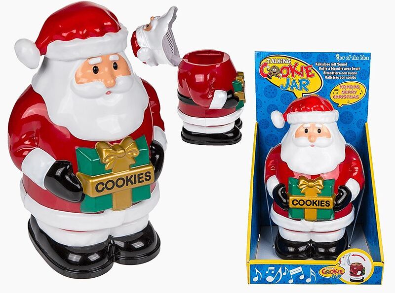 Bei jedem Naschen erklingt seine fröhliche,sonore Stimme: "Ho,ho,ho - Merry Christmas!" - So macht Naschen doppelt Spass und die Wienachts-Guetsli schmecken noch besser! Diese Dose ist 26 cm gross, hat also genügend Platz für ca. 400-500 g Weihnachts- Konfekt....