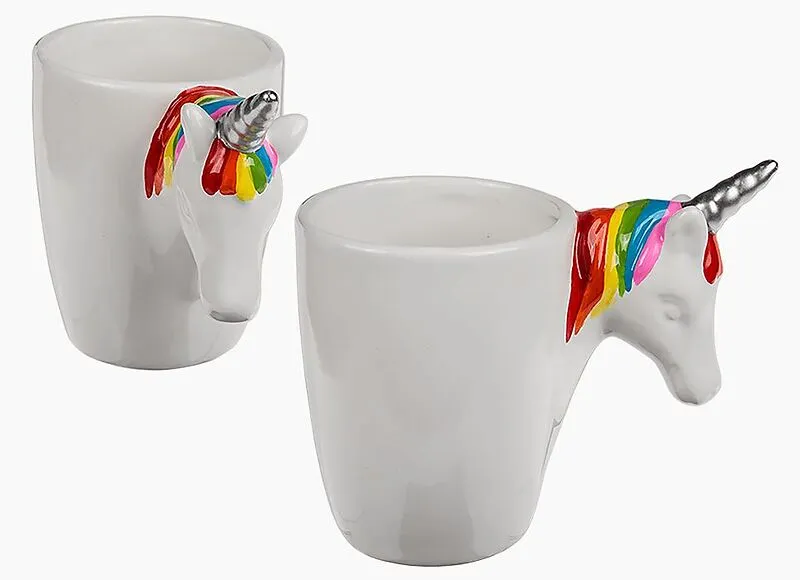 Weisser Steingut-Becher mit Einhornkopf-Griff