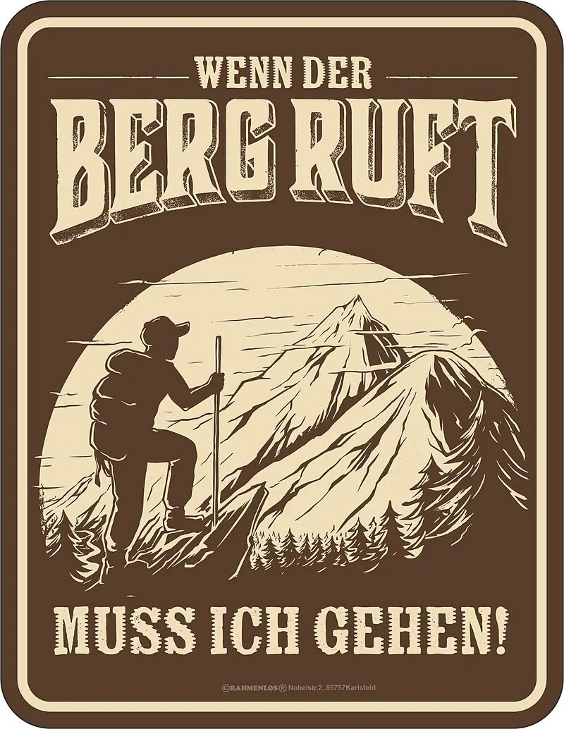 Wenn der Berg ruft muss ich gehen!Blechschild im Format 17 x 22cm aus rostfreiem Aluminium.