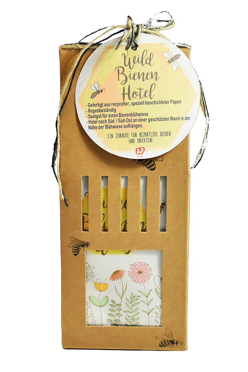 Artenvielfalt und Naturschutz geht uns alle an. Unser Bienenhotel aus recycelter, wetterbeständiger Pappe trägt zur Aufklärung und zum Schutz der Wildbienen und Insekten bei. Das mitgelieferte Saatgut enthält Sorten, die von diesen Bienen gerne bevorzugt angen...