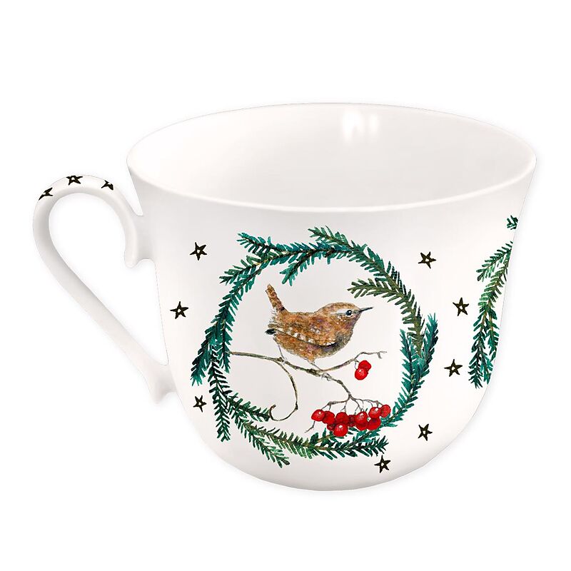 Porzellantasse Durchmesser ca. 11,5cm, Höhe ca. 8,5cm aus hochwertigem Brillantprozellan in Geschenkschachtel. Spülmaschinen- und mikrowellenfest, lebensmittelecht und natürlich schwermetallfrei.