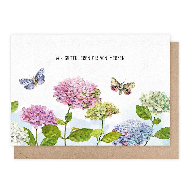 Wir gratulieren dir von Herzen Doppelkarte mit Hortensien-Motiv