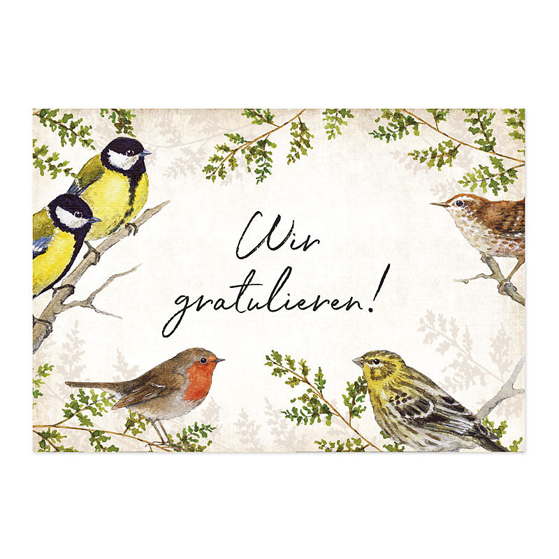 Wir gratulieren Postkarte mit Vogel-Motiv