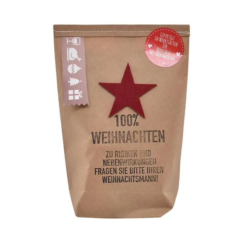 Alle Jahre wieder ist Weihnachten und es kommt immer so plötzlich. Die 100% Weihnachten Tüte beinhaltet eine kleine Weihnachtsdeko für den Weihnachtszweig oder Baum, ein leckeres Winterpunsch Rezept und ein stimmungsvolles Weihnachtslicht. Da ist sofortige Wei...