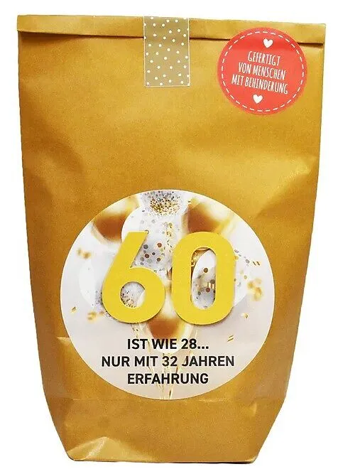 Inhalt: Saattüte für einen Geburtstagsblumenstrauß zum Aussäen Geburtstagsspruch Karte Luftballon Happy Birthday Geburtstagskerze mit 60! Geburtstagsbutton Inhalt kann variieren. Größe: 14x22cm
