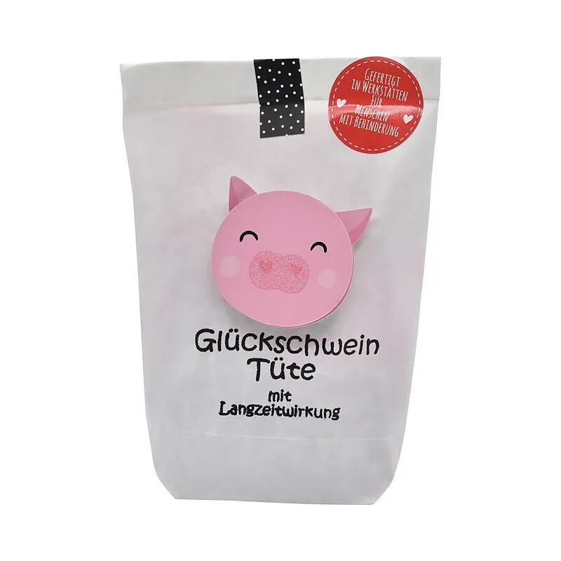 So viel Glück in einer Tüte - mehr Schwein geht fast gar nicht. Mit dieser großen Portion Glück kann nichts mehr schief gehen. Tolles Geschenk als Glückbringer für Prüfungen oder als Extra Dosis für Pechvögel. Inhalt: Glitzer Glückschwein, Glückschwein Anhänge...
