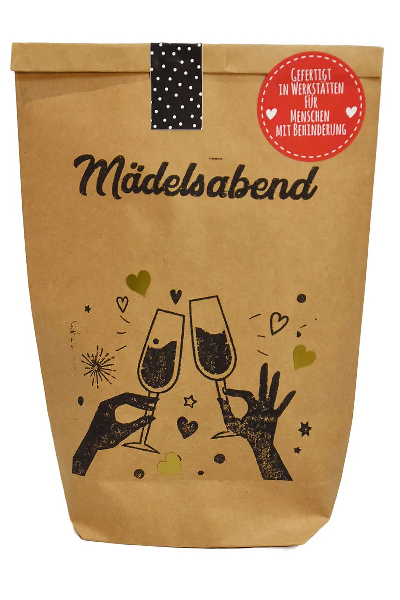 Ein toller Abend mit den Lieblingsmädels, dafür findet sich immer ein Platz in unseren Terminkalendern. Handgefertigte Überraschungstüte mit vielen spaßigen Kleinigkeiten für einen lustigen Mädelsabend. Inhalt: Prosecco Topper, Stadt Land Mädelsabend Spieleblo...