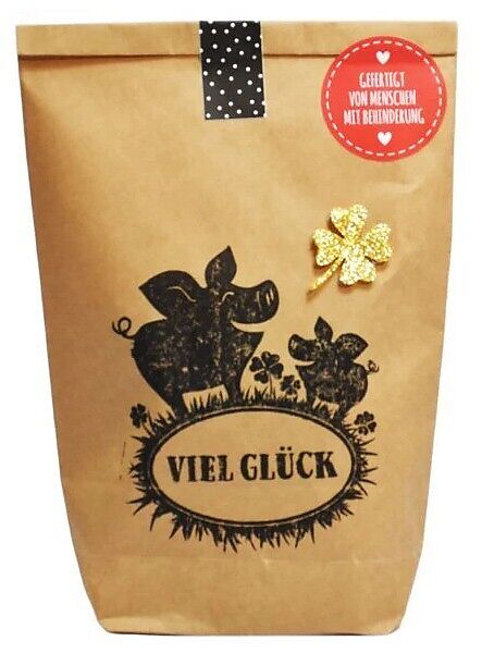 Inhalt: Glitzerschweinchen als Glücksbringer Kerzenhalter aus Holz mit passender Kerze Schlüsselanhänger als Glücksbringer Glück Spruchkarte