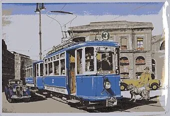 Berühmte Zürcher Tram Plakate - Blechpostkarte Blechpostkarte aus echtem wiederverwertetem Weissblech zum verschicken, oder als dekorativer Wandschmuck (jede Blechkarte wird mit einem Aufhänger geliefert). Grösse: 100 x 140 mm.