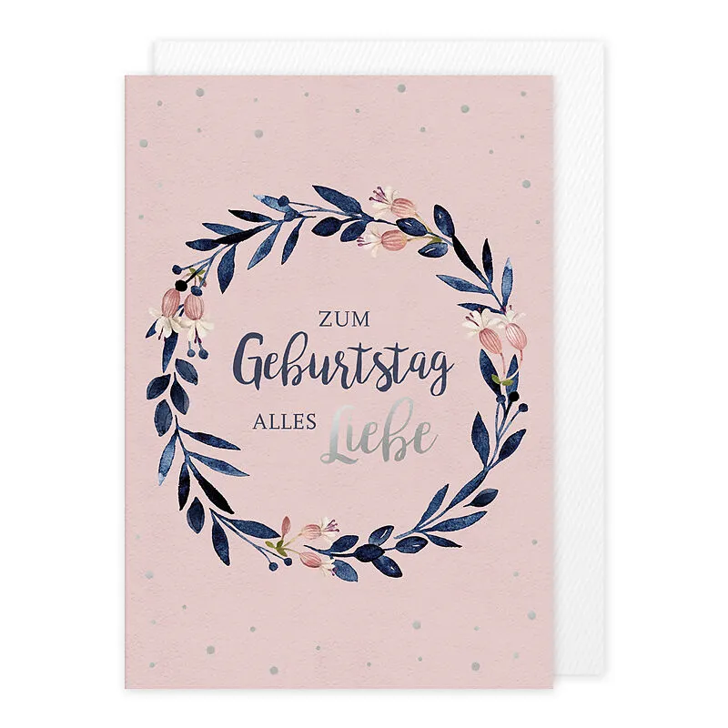 Zum Geburtstag alles Liebe Doppelkarte mit Blätterkranz-Motiv