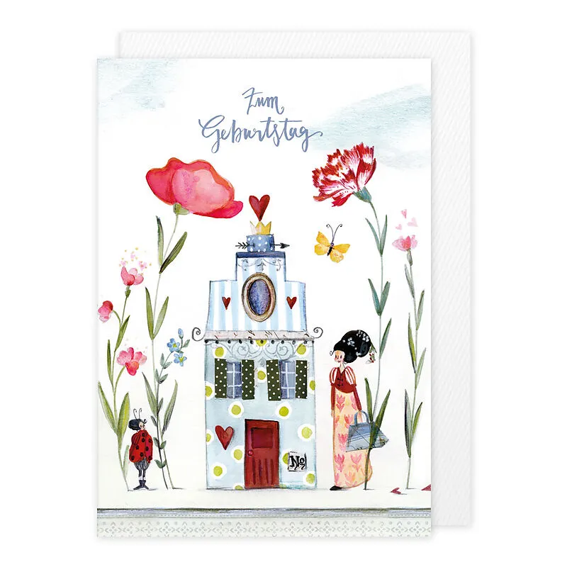 Zum Geburtstag Doppelkarte mit Haus-Motiv