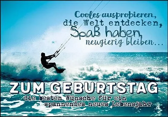 Zum Geburtstag (Kitesurfer), Shutterstock.com - Zai Aragon, Doppelkarten 125x185mm, deutsch, Quer, Geburtstag, Normalpapier, Keine Veredelung, Männer, Sport