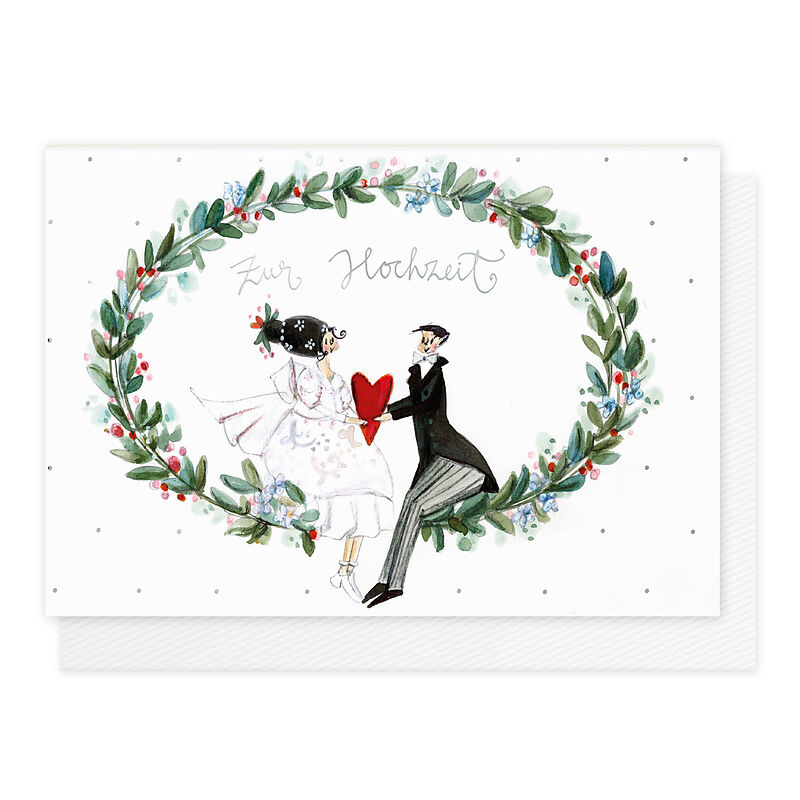 Zur Hochzeit Doppelkarte mit Kranz-Motiv