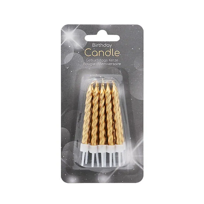 10 Geburtstagskerzen mit Halter gold, für auf den Geburtstagskuchen.