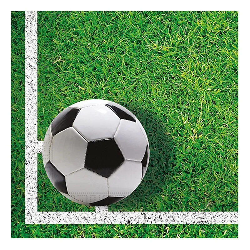 Papierservietten 33 x 33 cm mit Fussball Motiv. Diese bunten Papierservietten sind genau die richtige Dekoration für eine Party. Packung à 20 Stück.