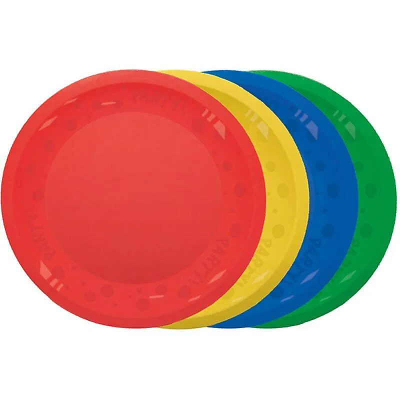 4 Party Teller Bright Dots 21cm - Reusable, aus Plastik. Wiederverwendbar!