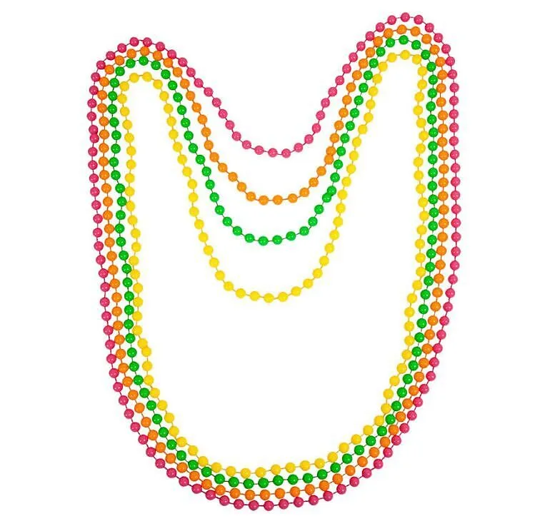 80er-Jahre Neon-Halskette vierfarbiges Set (pink,orange,grün,gelb)