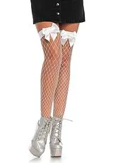 • Netzstrümpfe halterlos mit Schleife weiss