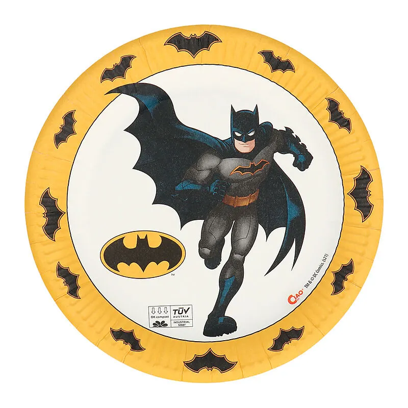 Ein Set mit 8 Einweg-Papptellern (23 cm) mit einem coolen Batman- Aufdruck.