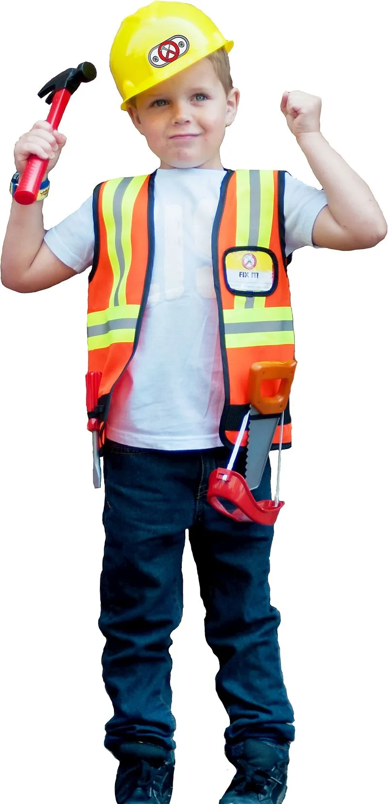 Lieferumfang:Veste, Helm, Hammer, Säge, Schraubendreher, Brille, Namensschildempfohlenes Alter: 5 - 6 Jahre