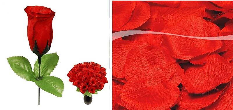 Wie wär's mit einem "Bed of Roses" ? : 30 wunderschöne aufgeblühte Rosen (je 28 cm lang) sowie 144 echt aussehende rote Rosenblätter aus Stoff. Wenn das nicht himmlisch aussieht! Für Verliebte, Hochzeiten und andere feierlichen Anlässe.Material: edel verarbeit...