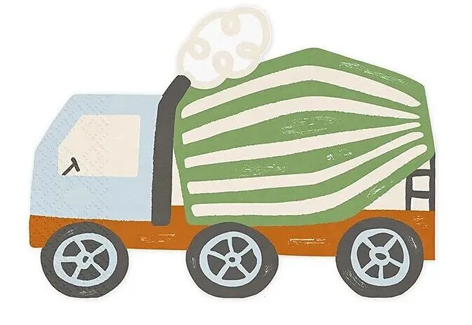 Papierservietten Betonmischmaschine, Farbenmix, Abmessungen aufgeklappt ca. 32 x 26 cm, Abmessungen zusammengeklappt ca. 16 x 13 cm. 1 Verpackung = 20 Servietten
