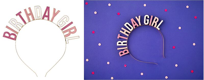 aus Metall mit dem Schriftzug Birthday Girl, bunt gemischt.