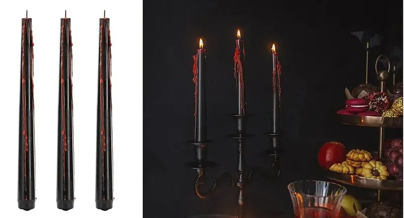 Kegelförmige Kerzen mit blutendem Wachseffekt, Höhe ca. 25 cm, Durchmesser ca. 2 cm. Das Set enthält 3 Kerzen.