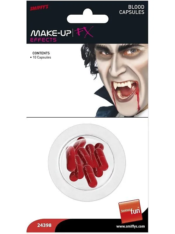 Man steckt sie in den Mund, beisst darauf und plötzlich fliesst das Blut über Lippen und Mundwinkel und erzeugt einen Horror-Effekt! Packung enthält 10 Kapseln