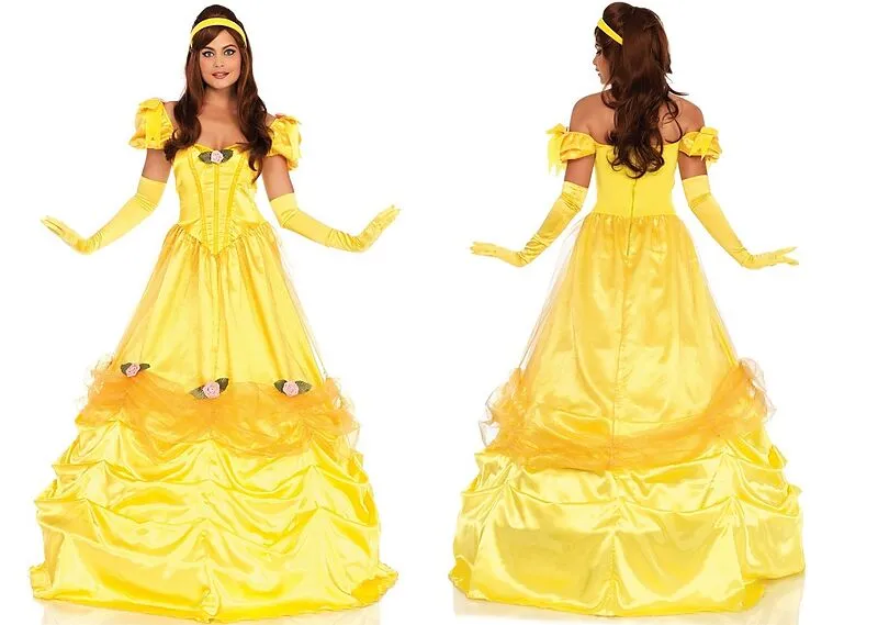 Lieferumfang: Kleid, Haarreif Material: 95%Polyester, 5%Spandex Schönes Satin Kleid im typischen "Belle-Gelb" mit diversen Details. Das Kleid kann mit den transparenten Trägern auf den Schultern oder Schulterfrei getragen werden.