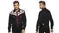 Farbe: schwarz mit roten und beigen Verzierungen.
