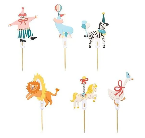 Zirkus Muffin Dekoration, Mix aus Designs und Farben, Höhe ca. 9-11,5 cm.Inhalt: 6 Stück