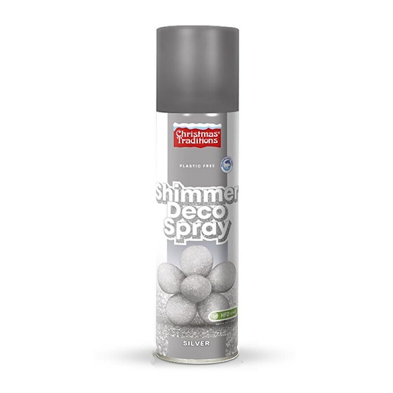Schimmerspray Silber (100ml), ideal für Weihnachtsdekorationen, Bastelarbeiten und Blumenarrangements! Das Spray ist zu 100 % frei von Plastikpartikeln. Es wird HFO-1234ze(E) verwendet, das einzige nicht brennbare Treibmittel mit extrem niedrigem Treibhauspote...