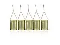 hellgoldene, gerillte Metallbüchsen mit Juteschnur