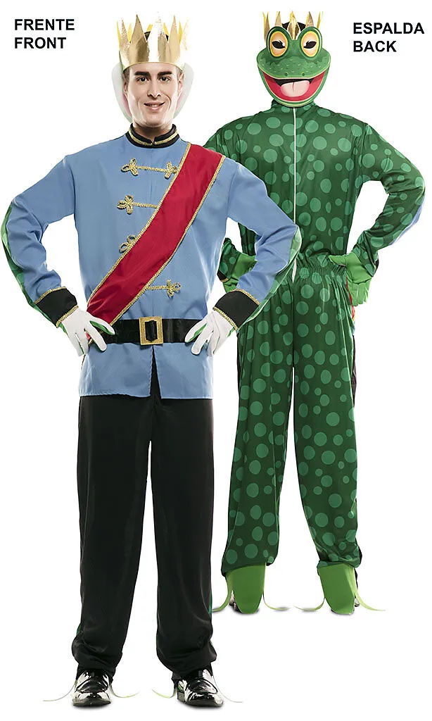 Die Überraschung an jeder Party! Du kommst als Frosch, drehst du dich um bist du ein Prinz. Dieses neue Double Fun-Kostüm ist der neue grosse Party-Hit! Quasi 2 Kostüme in einem! Lieferumfang: Overall, Krone mit Maske & Handschuhe