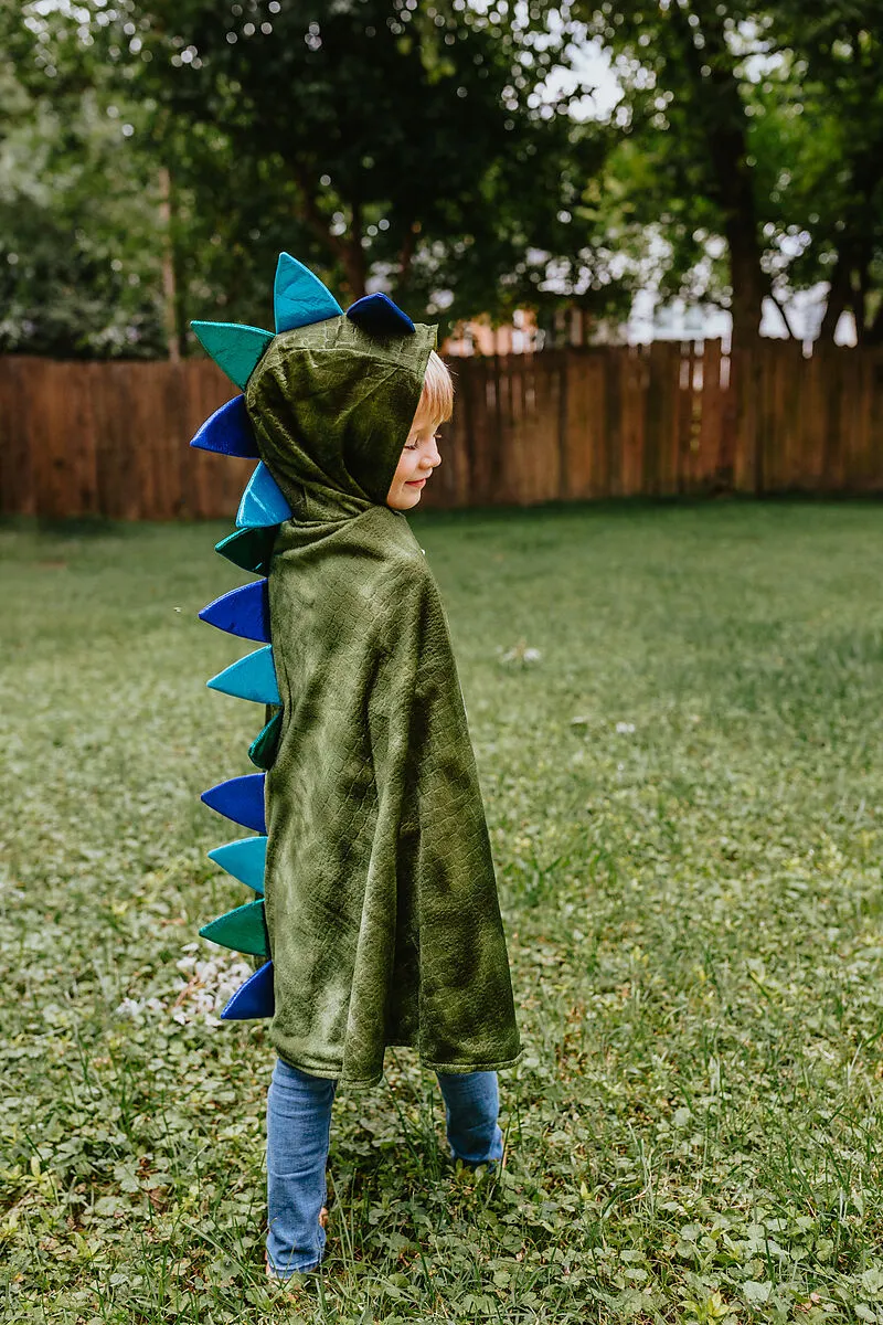 Dieser kleine Drachenumhang wird garantiert viele feurige Abenteuer inspirieren! Der strukturierte Velours-Umhang mit Schuppen und ausgestopften Krallen ist aus weichem, zerknautschtem Samt gefertigt und hat mehrere Grüntöne für den perfekten Drachenlook. Der ...
