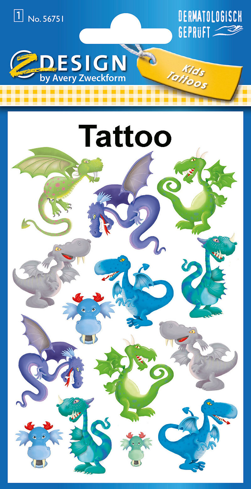 Wasserfeste Tattoos Einfache Anbringung mit Wasser, leicht zu entfernen mit Öl Inhalt: 14 Tattoos Sticker-Verpackungsgrösse: 16 x 8 cm