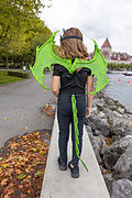 Die Drachenflügel sind mit einem Gummiband an der Innenseite befestigt und können so bequem an- und ausgezogen werden.