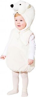 Einheitsgrösse 104 Kuschelig weiches Plüschcape für Ihre kleinen Lieblinge. Die Kapuze ist mit einem niedlichen Eisbärgesicht verziert. Für eine schnelle und einfache Verkleidung. Hält beim Strassenkarneval kuschelig warm. 100% Polyester Achtung! Für Kinder un...