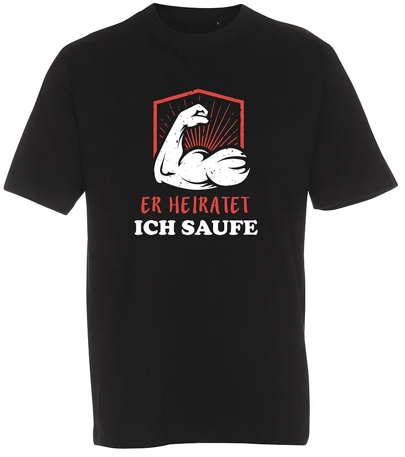 Die lustigen Polterabend T-Shirts für Männer. Dieses Shirt ist für die Gefolgschaft des Bräutigams bestimmt.