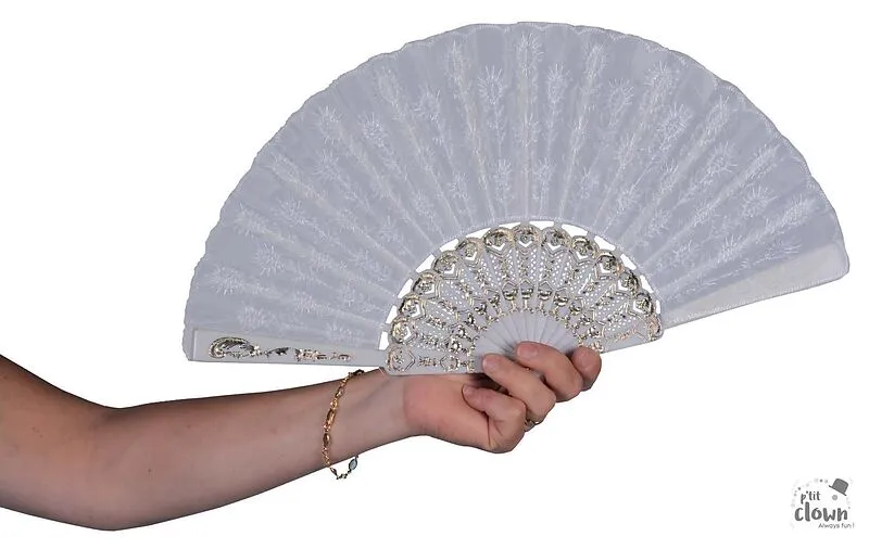 Fächer mit Stickmuster weiss