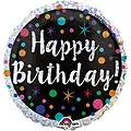 Folienballon rund, Happy Birthday. Grösse: 45cm. Ein strapazierfähiger Folienballon mit einem selbstschliessenden Automatikventil. Der Ballon hat ein Patentventil eingebaut und kann mehrfach aufgeblasen werden.