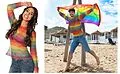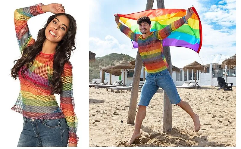 Netzshirt in Größe M/L mit langen Ärmeln für Männer und Frauen. Die Regenbogenfarben machen das Shirt perfekt für ein anspruchsvolles Pride-Outfit. Der Retro-Fischnetz-Stil macht das Shirt auch sehr schön für ein buntes 80er- und 90er-Jahre-Outfit. 100% Polyes...