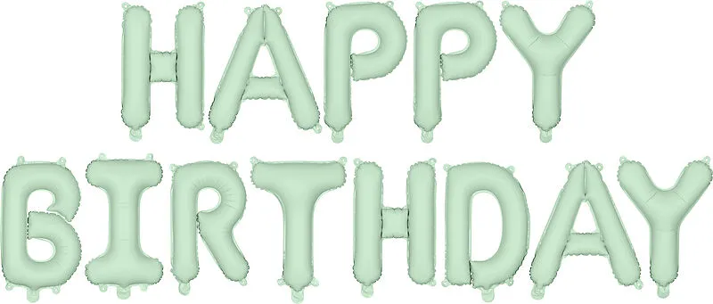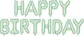 Matter Happy Birthday Folienballon in grün, Masse ca. 340 x 35 cm. Zum Aufblasen mit Luft. Der Ballon ist selbstverschliessend und hat 4 Haken zur einfachen Befestigung an einem Band.