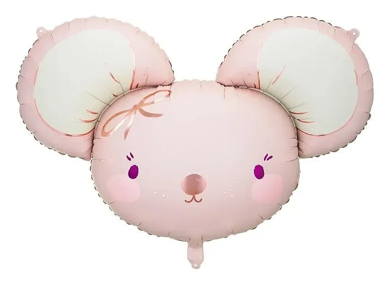 Folienballon Maus in Hellrosa, Abmessungen: vor dem Aufblasen ca. 96 x 64 cm (38 x 25''), Höhe nach dem Aufblasen ca. 75 x 46 cm (29.5 x 18''). Kann mit Helium oder Luft aufgeblasen werden. Zum Set gehört ein Strohhalm.