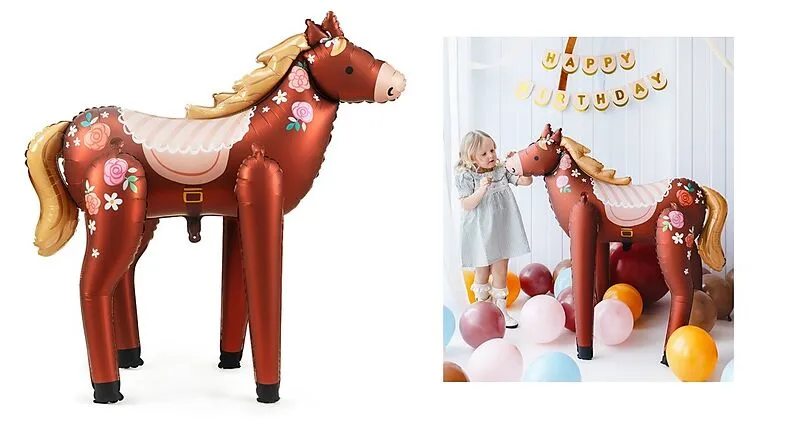 Folienluftballon Pferd,Farbenmix Abmessungen: vor dem Aufblasen ca. 110 x 126 cm (40 x 50''), Höhe nach dem Aufblasen ca. 101 x 105 cm (40 x 42''). Kann mit Luft aufgeblasen werden. Zum Set gehört ein Strohhalm.