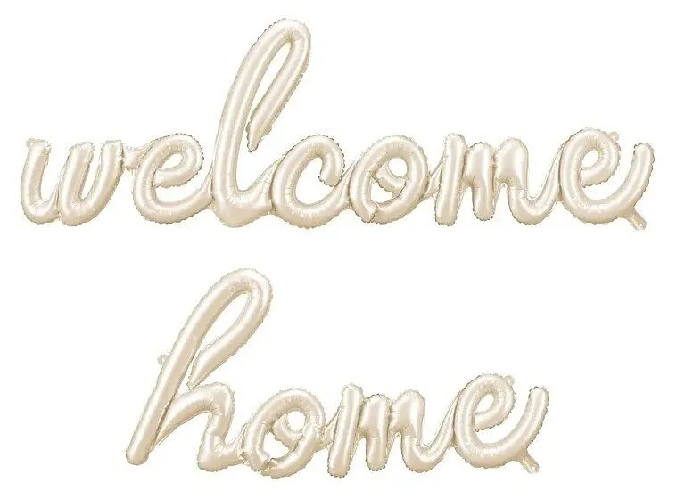 Folienballon mit der Aufschrift ''Welcome Home'' in Cappuccino-Farbe mit Satin-Finish. Maße vor dem Aufblasen ca. 335x71 cm (132 x 16''), Maße nach dem Aufblasen ca. 258 x 55 cm (101,5 x 21,5''). Zur Luftbefüllung. Das Set enthält einen Strohhalm und ein golde...