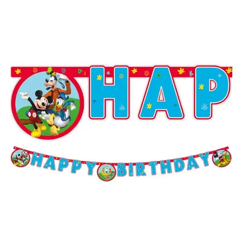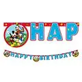 Girland Happy Birthday Mickey Mouse. Mit dieser langen Girlande ist die Dekoration zum Geburtstagsfest perfekt.