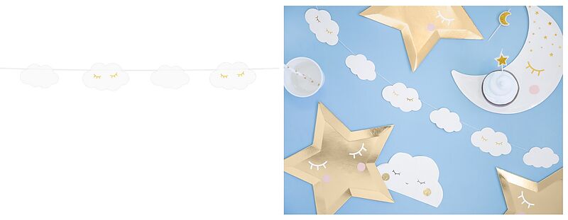 Super süsse Wolken-Girlande die auch als Kinderzimmerdekoration verwendet werden kann.