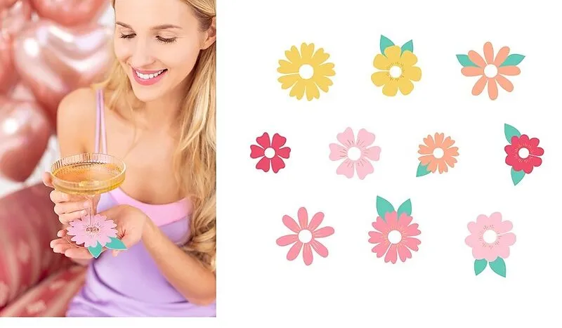 Glas-Marker Blumen, gemischte Farben, Set mit 10 verschiedenen Motiven (je 1 Stück), Maße ca. 5,5-9,5 x 5.7-10 cm